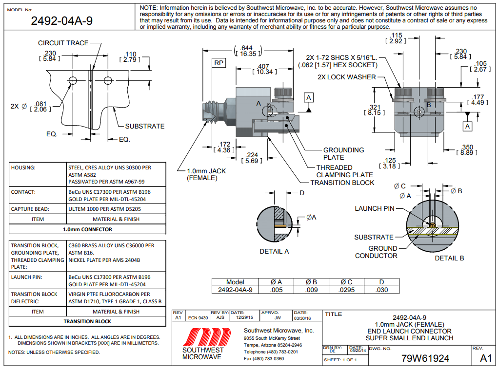 引腳/電媒介截面積:0.005 / 0.0290