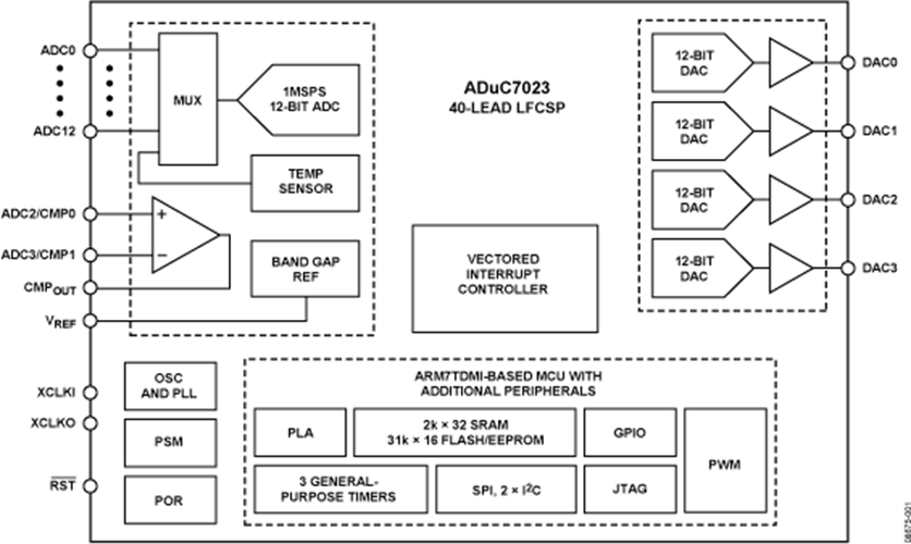這種電子(zi)元(yuan)器件(jian)的(de)工作的(de)額(e)(e)定功率電壓使用(yong)時(shi)(shi)間區域(yu)為2.7 V至3.6 V,額(e)(e)定功率溫暖使用(yong)時(shi)(shi)間區域(yu)為-40°C至+ 125°C工業制造溫暖使用(yong)時(shi)(shi)間區域(yu)。ADuC7023用(yong)到32引(yin)(yin)腳或40引(yin)(yin)腳LFCSP封(feng)口。還打造36球晶圓(yuan)級CSP封(feng)裝類型(WLCSP)。