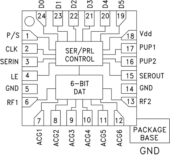 0.25 dB LSB GaAs MMIC 6五位數字衰減器,采用了SMT封口,DC - 6 GHz