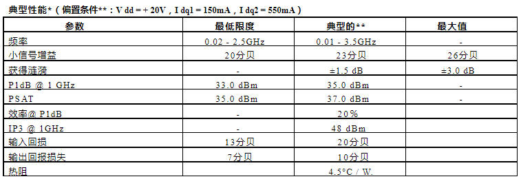 AM003536WM-FM-R是AM003536WM-BM-R安裝在(zai)銅(tong)制法蘭(lan)支架上,用于擰緊金(jin)屬散熱器。兩個(ge)部(bu)分都(dou)是符合RoHS標準。它(ta)的功能(neng)是指光纖寬帶從(cong)10MHz到(dao)3.5GHz;高輸(shu)(shu)出(chu)功率P1dB=36dBm;高增(zeng)益為23dB;輸(shu)(shu)入/輸(shu)(shu)出(chu)匹配50歐(ou)姆(mu);而它(ta)的應用一般在(zai)軟(ruan)件無線電、儀表、獲得電阻等