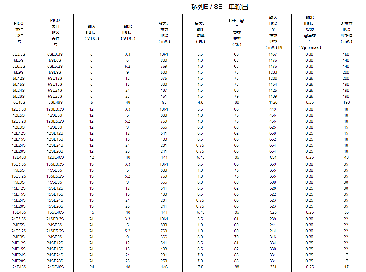 24V和28V產品型號±0.5V