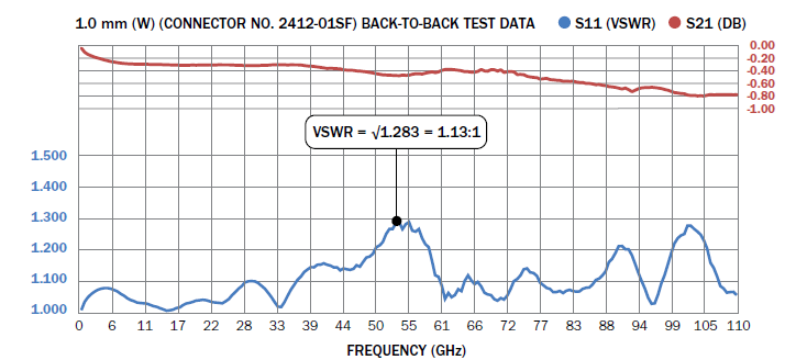 較低駐(zhu)波(bo)比DC to 110 GHz: 1.25:1 Max