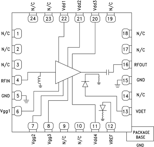 集成功率檢波器的GaAs pHEMT MMIC 2 W功率放大器,8 - 14 GHz